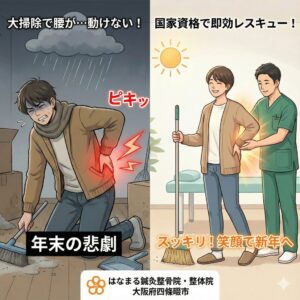 【四條畷】大掃除で腰が…!年末年始を「寝たきり」にしないための緊急レスキュー整体&正しい応急処置ガイド