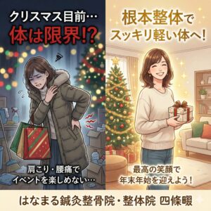 クリスマス・年末目前!「この痛み、なんとかならないかな?」とお悩みのあなたへ。最高の新年を迎えるための「やさしい根本整体」のご案内