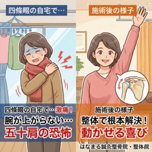 腕が上がらない激痛…「五十肩」を諦めないで!四條畷の整体で癒着を剥がす根本改善
